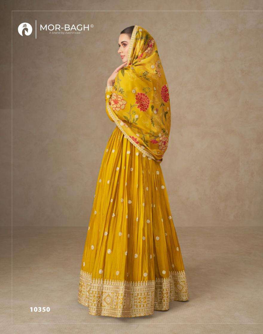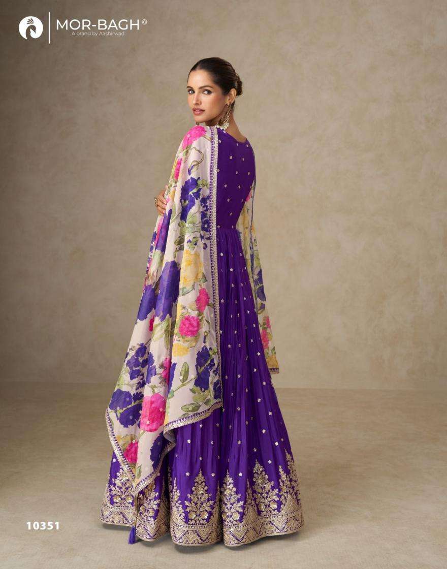 aashirwad presents anmol chinon silk full stitch party wear gown with dupatta