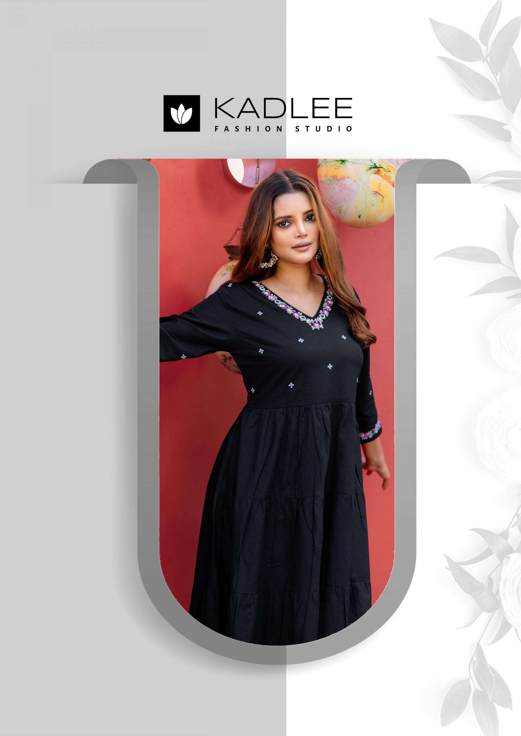kadlee presents taneja cotton modern designer gown style kurtis with pant dupatta collection