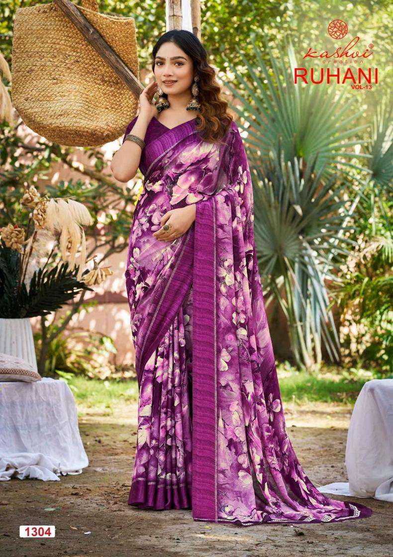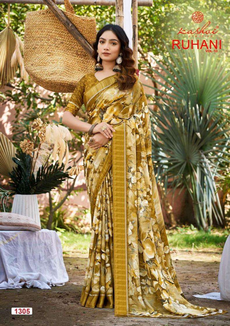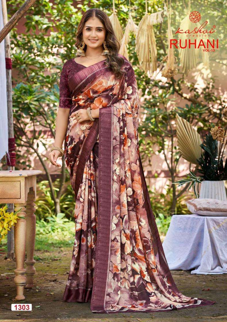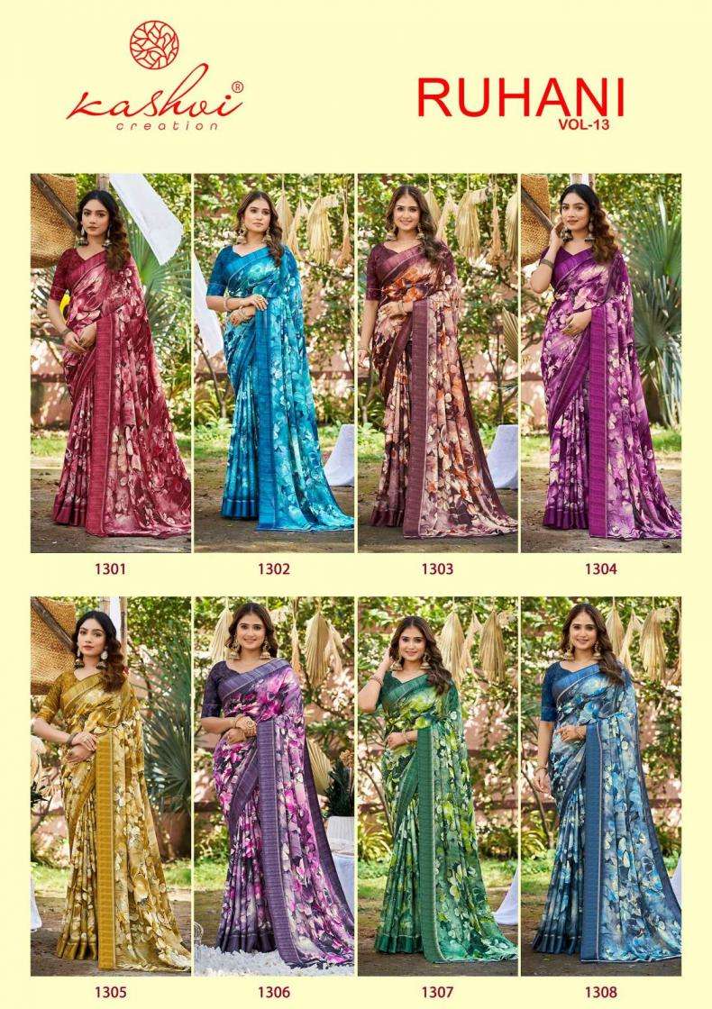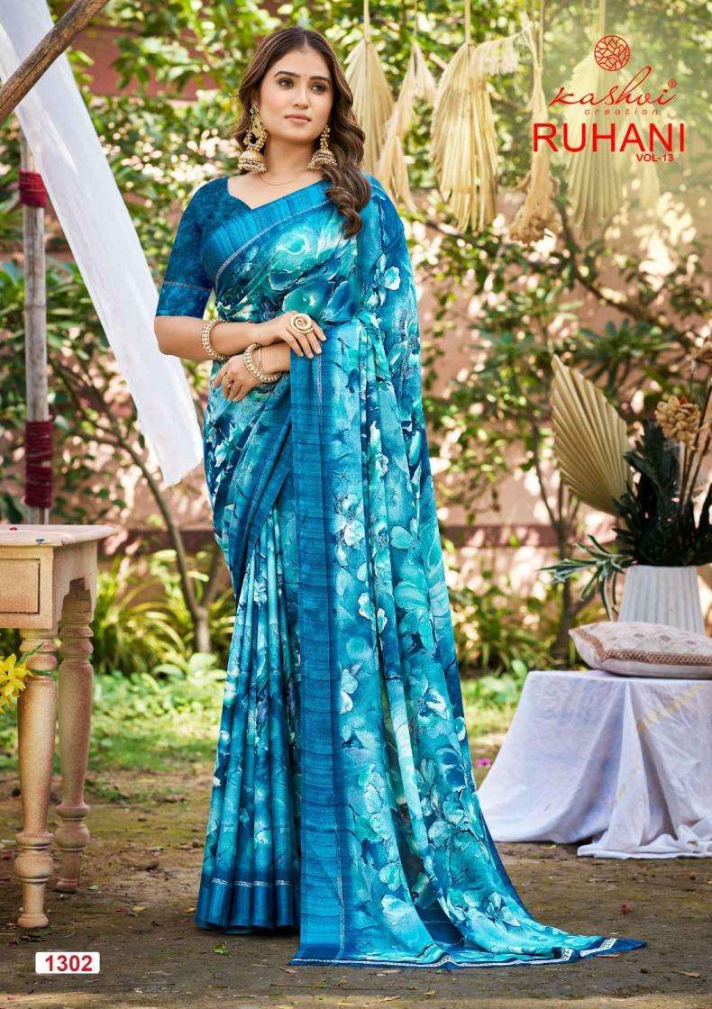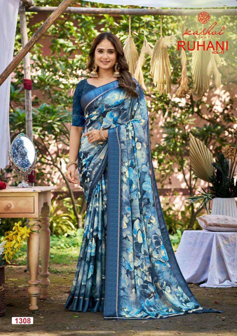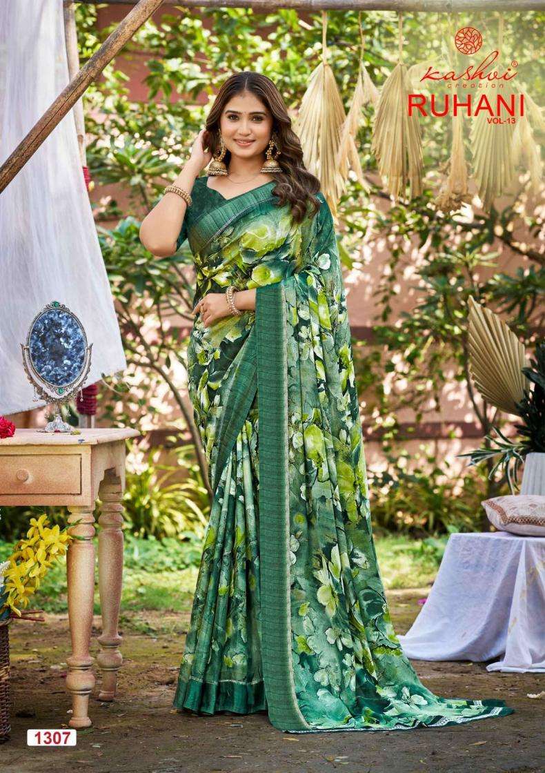 | Name: | Kashvi Creation Presents Ruhani Vol 13 Dull Moss Satin Patta Printed Sarees |