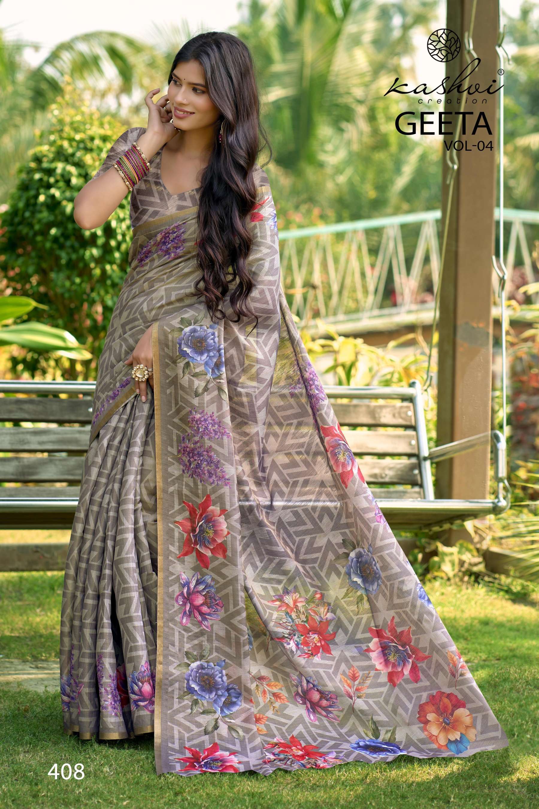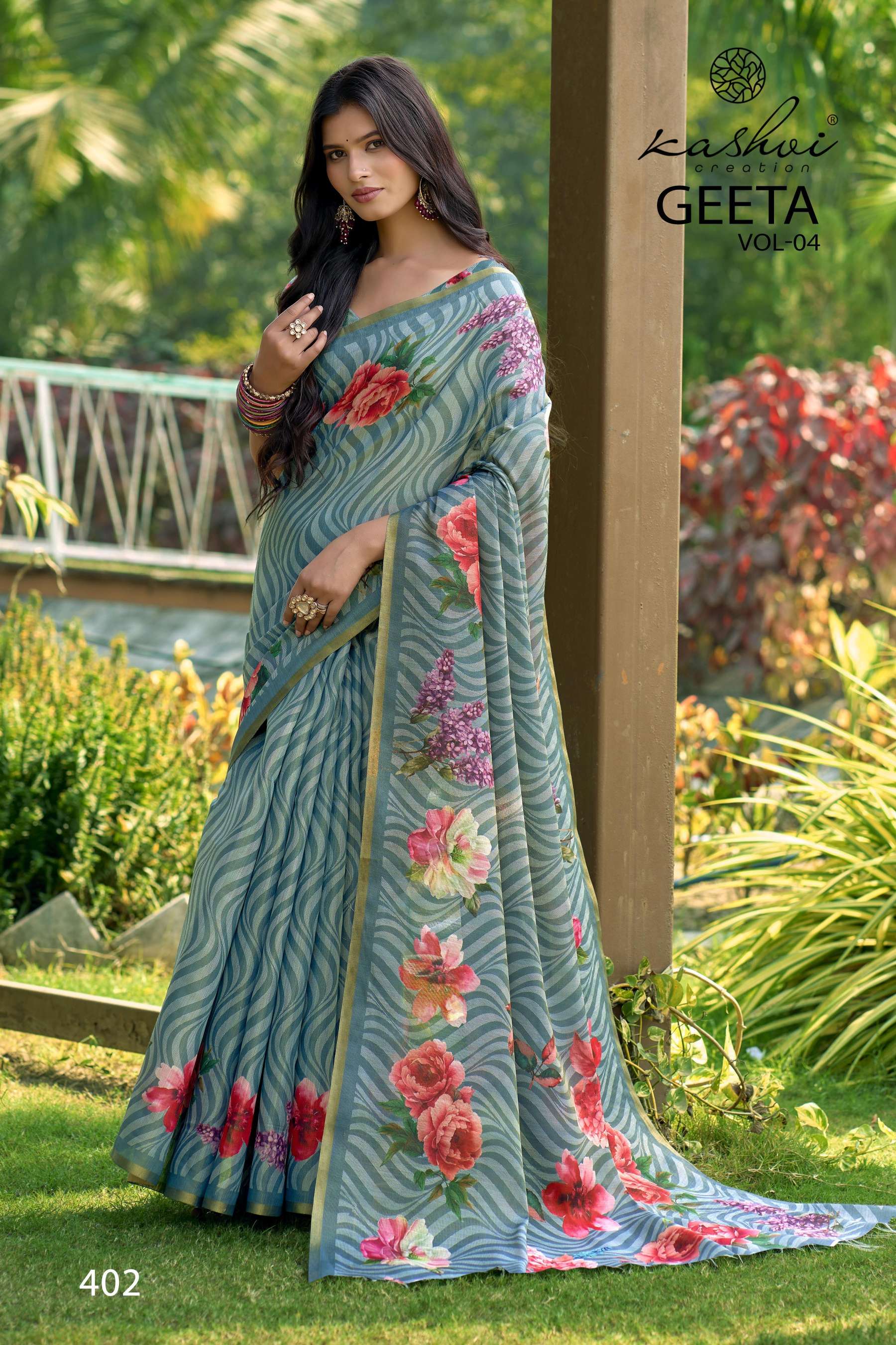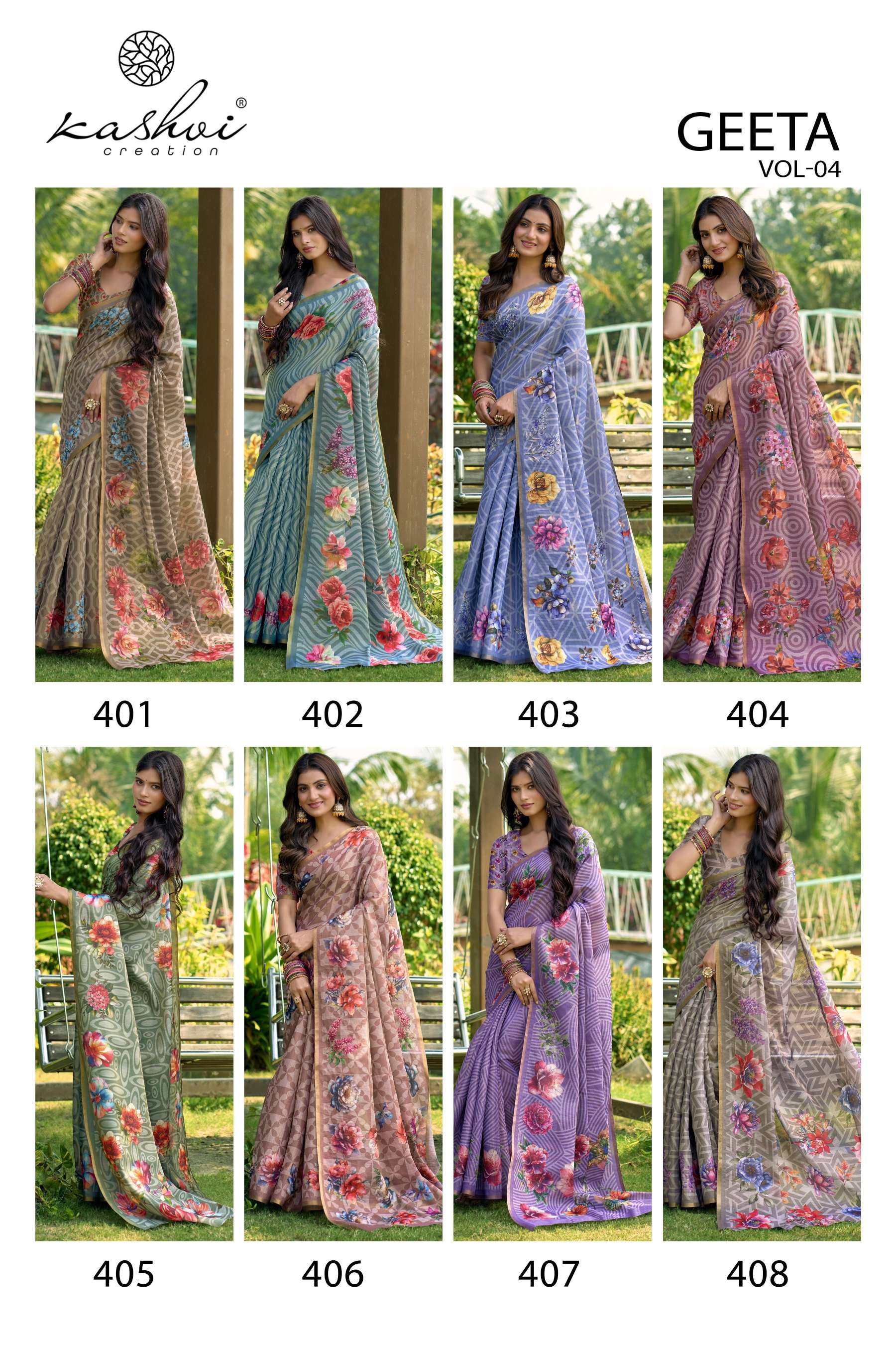KASHVI PRESENTS GEETA VOL-4 FANCY DESIGNER WEAR PRINTED SAREES WHOLESALER AND EXPORTER