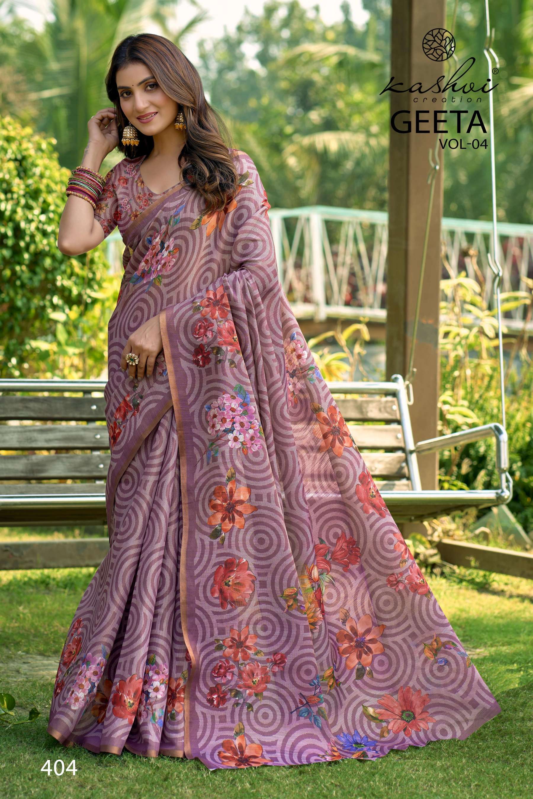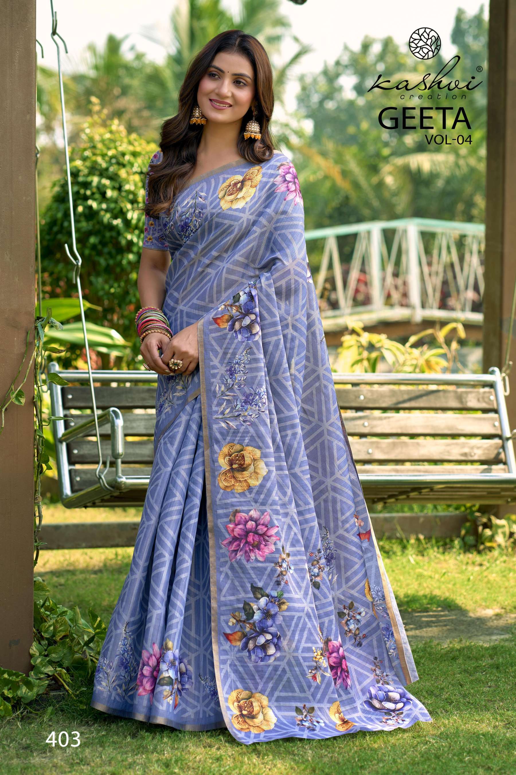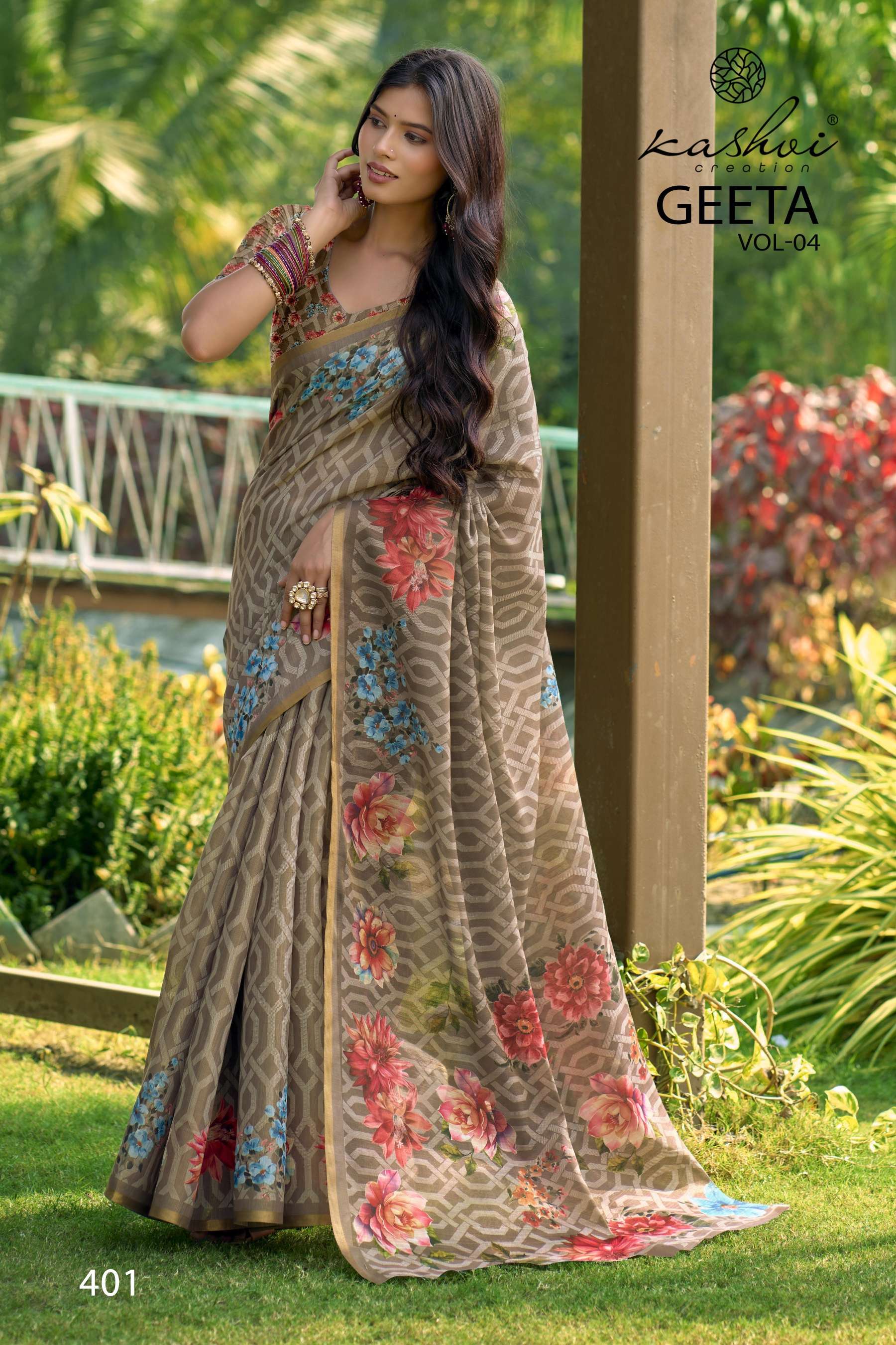 KASHVI PRESENTS GEETA VOL-4 FANCY DESIGNER WEAR PRINTED SAREES WHOLESALER AND EXPORTER