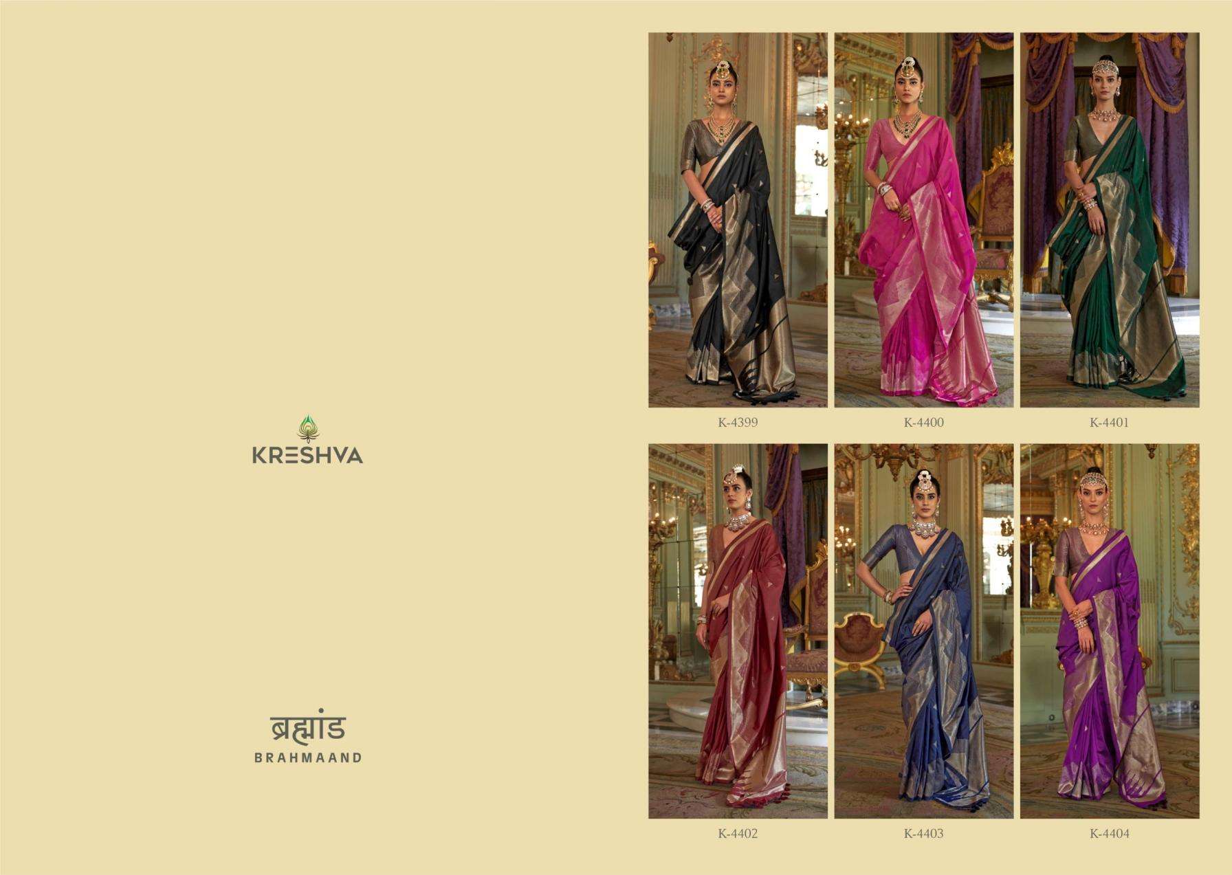 kreshva presents brahmaand 4399-4404 soft silk party wear sarees