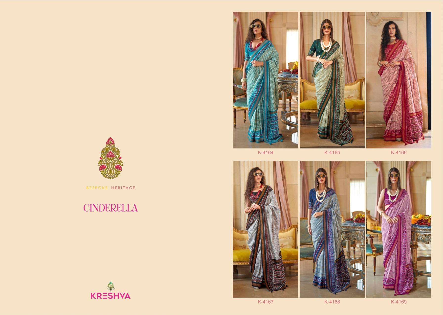 kreshva presents cinderella 4164-4169 fashionable double ikkat sarees