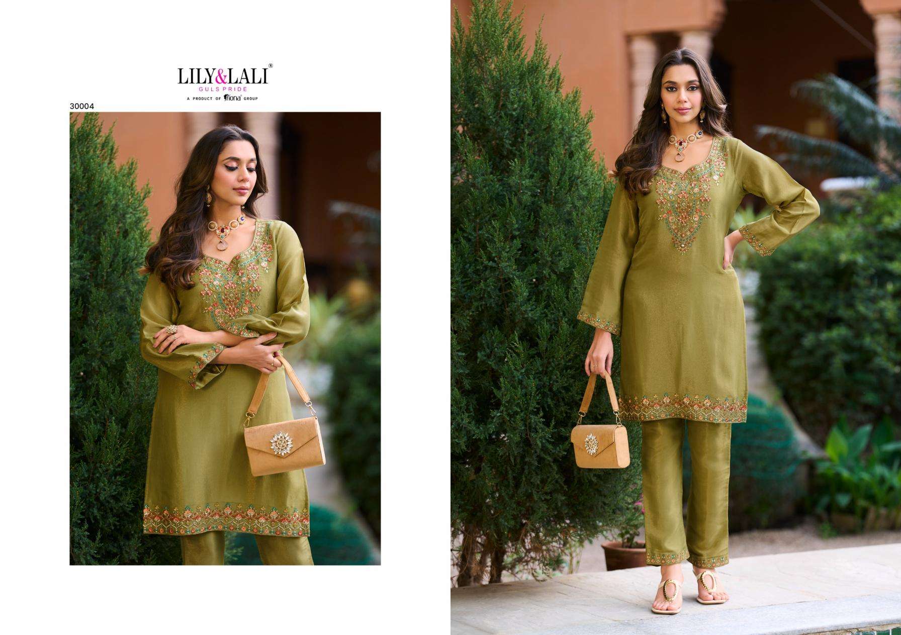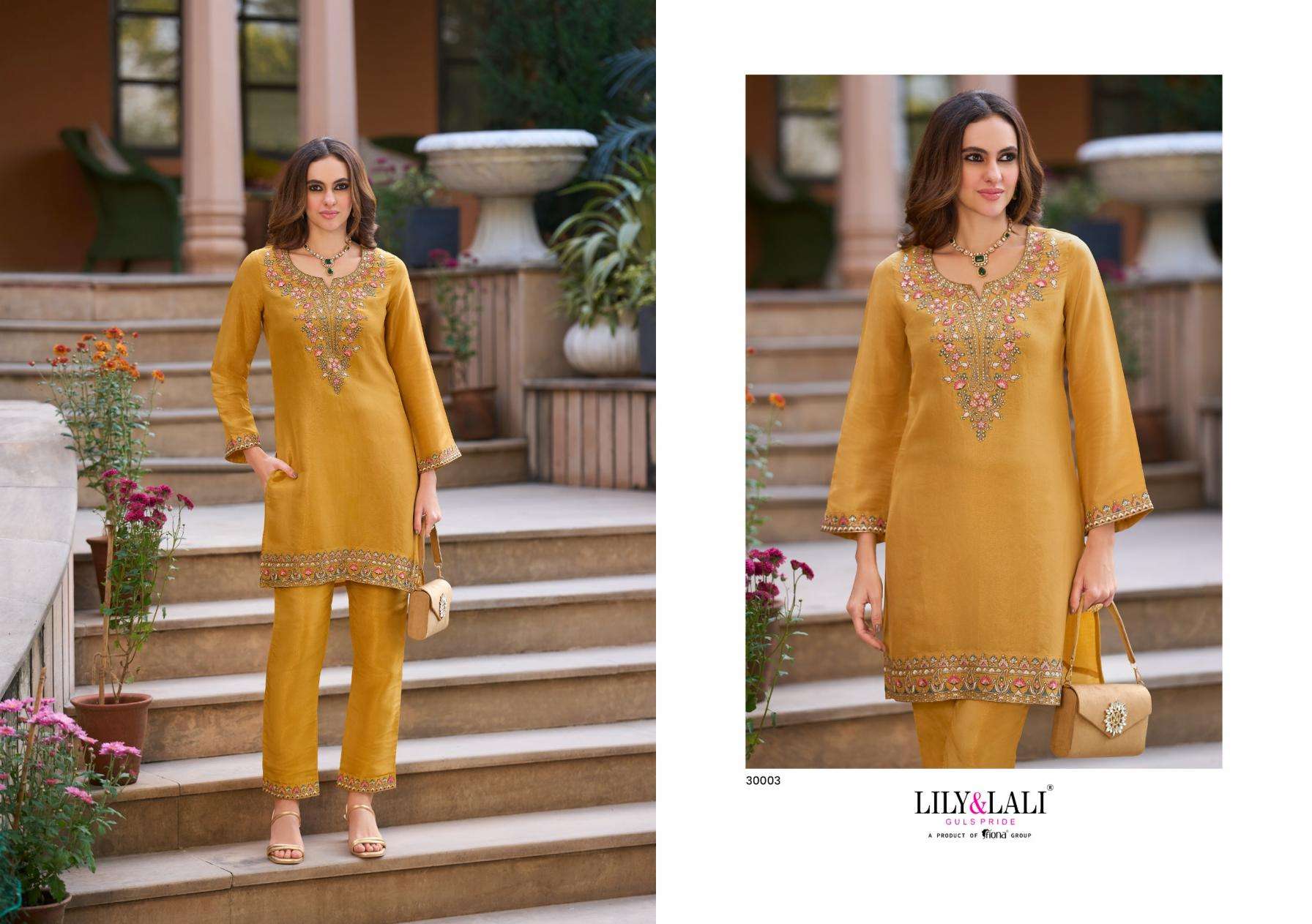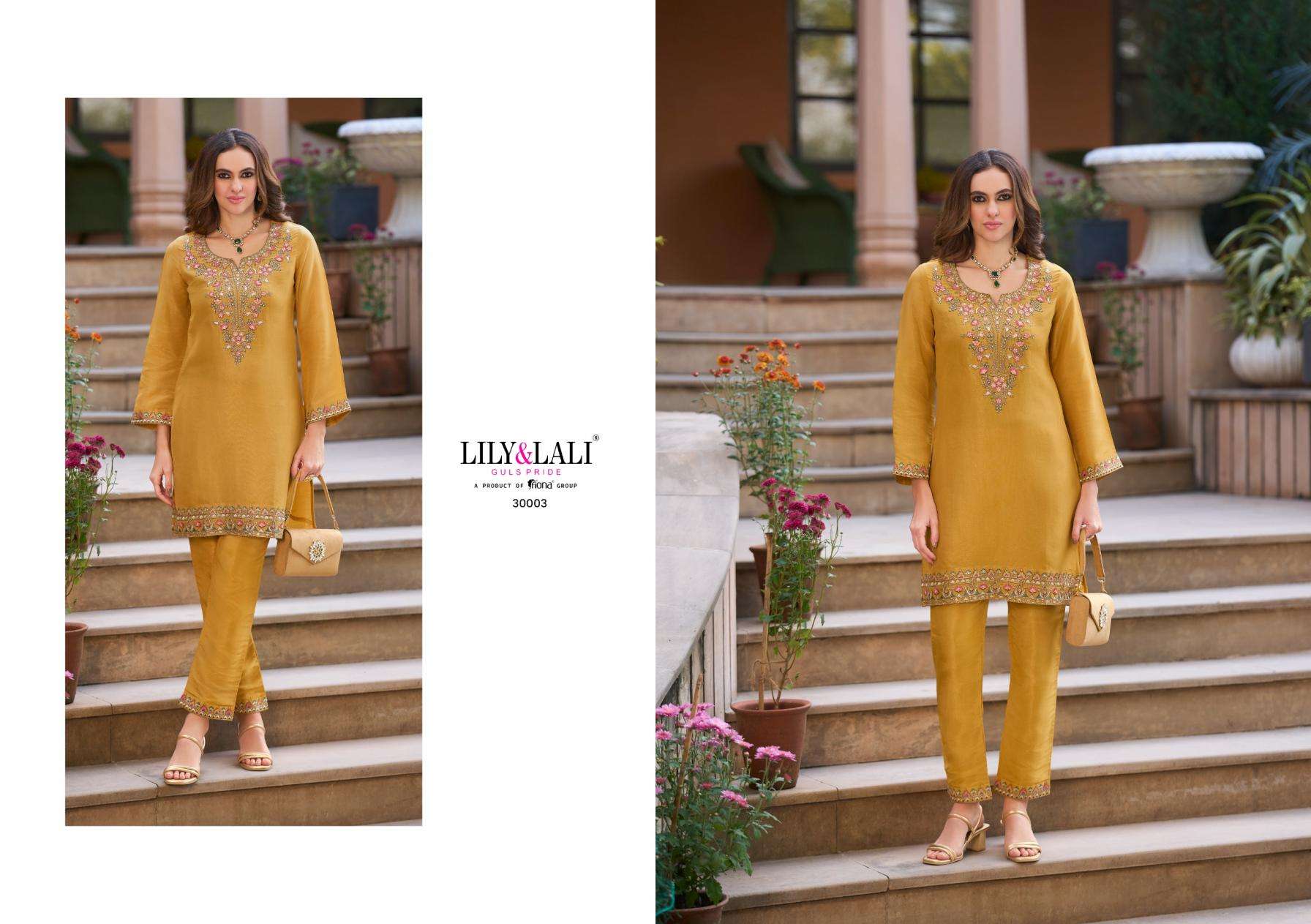 lily & lali presents jasleen viscose simmer silk fully stitch classic co-ord sets