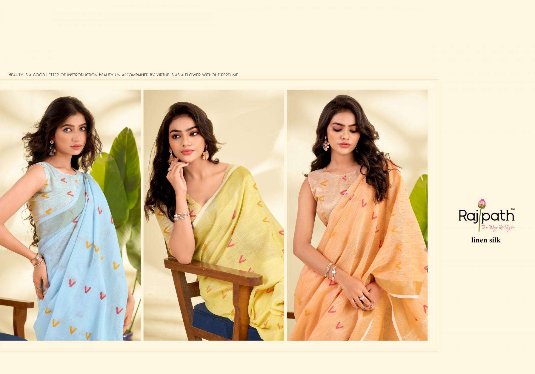 rajpath presents arrow silk linen silk elegant style saree wholesaler