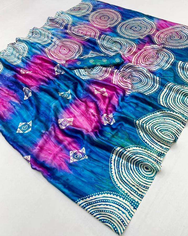 rajtex presents prism silk 001a-001f modal satin ajrakh printed sarees catalog