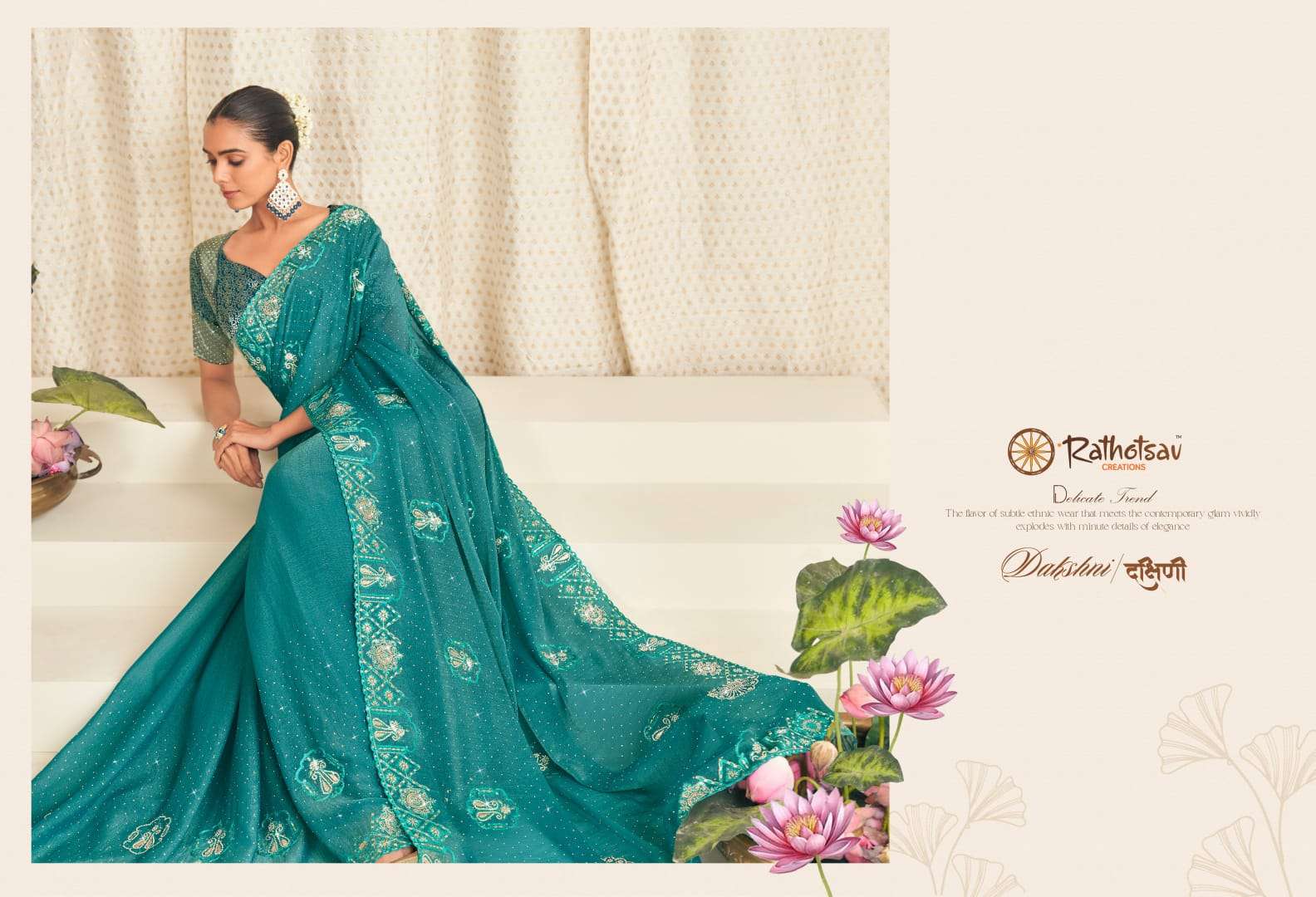 RATHOTSAV BY RAJGURU PRESENTS DAKSHINI EXCLUSIVE DESIGNER PARTY WEAR SAREES COLLECTION