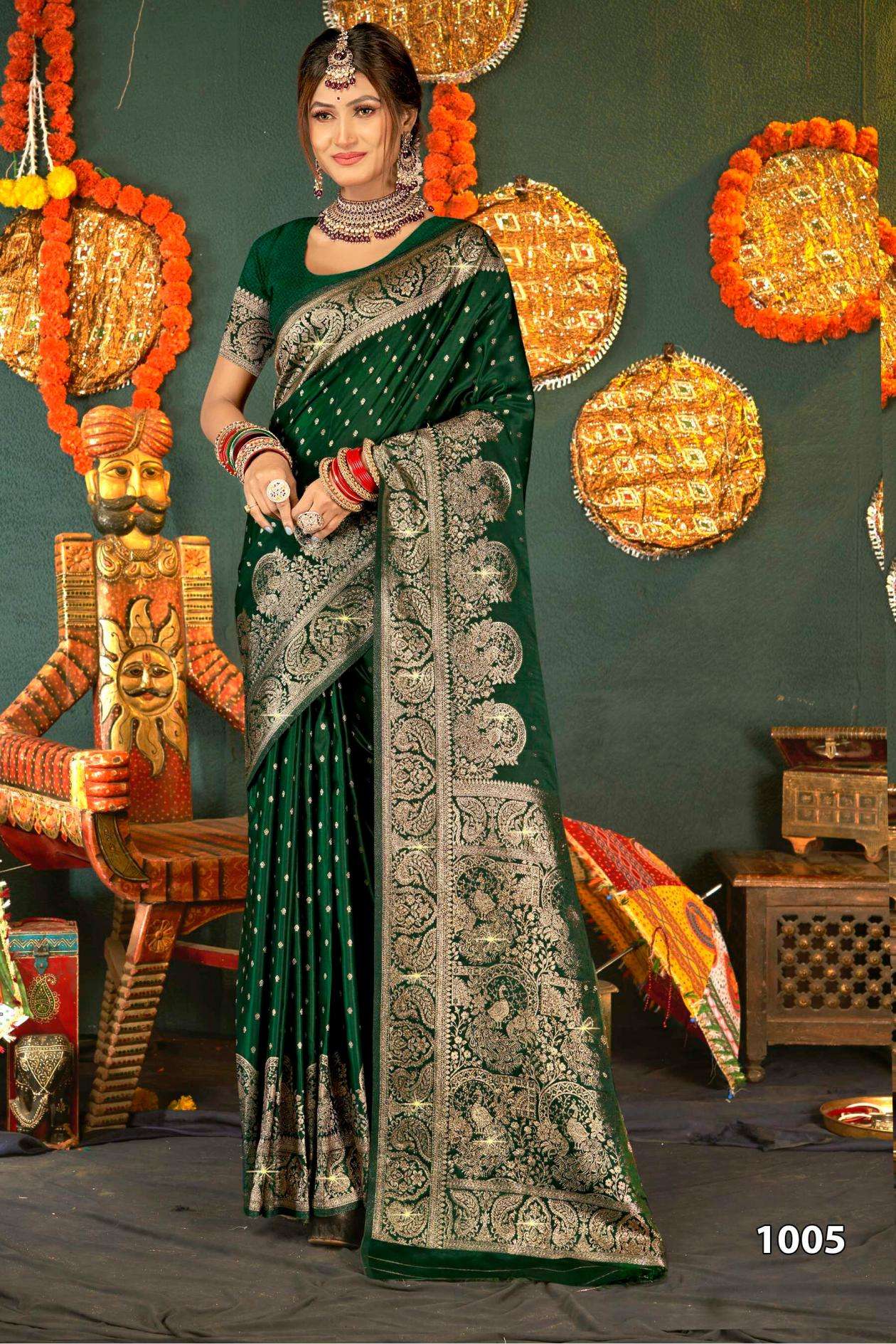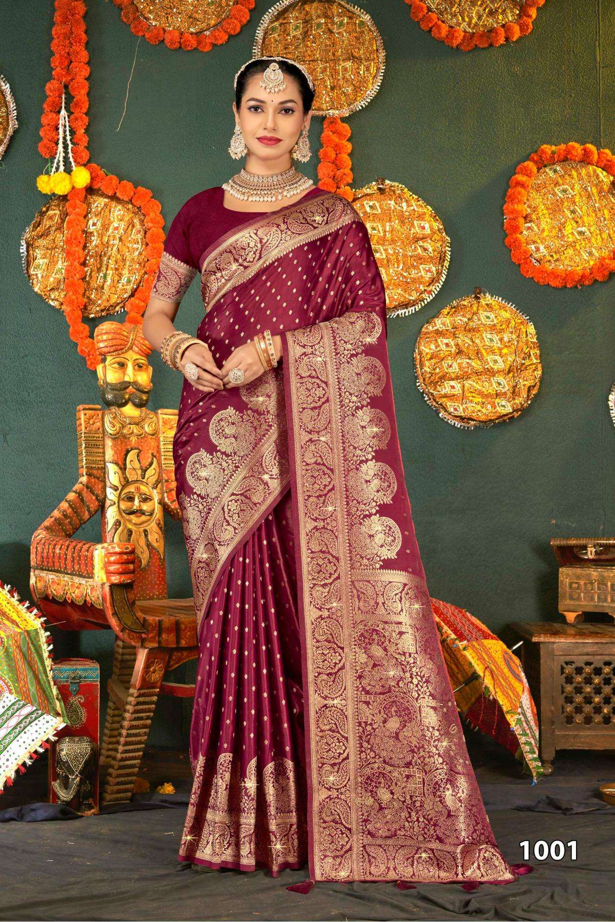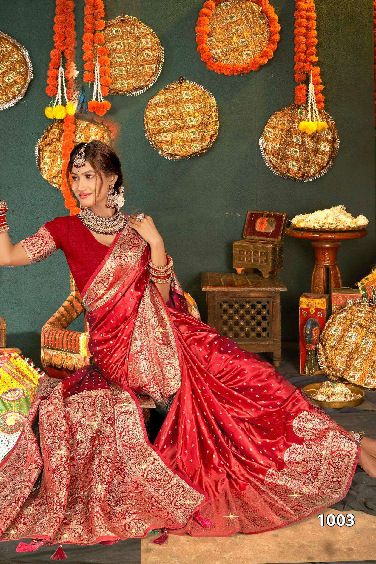 Saroj Presents Shubh mangalam Satin Saroski Vol-2 Satin silk saree Catalog Wholesaler