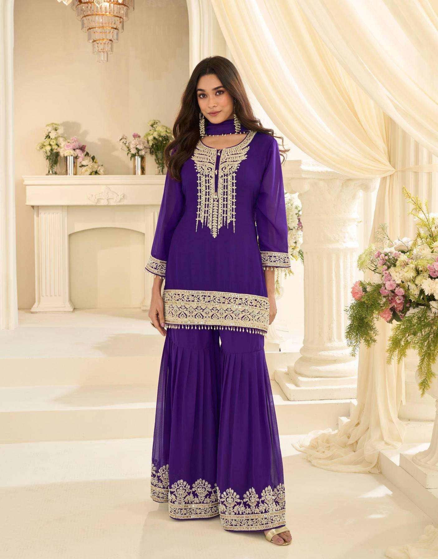 sayuri designer presents bansuri georgette readymade sharara kurti with dupatta