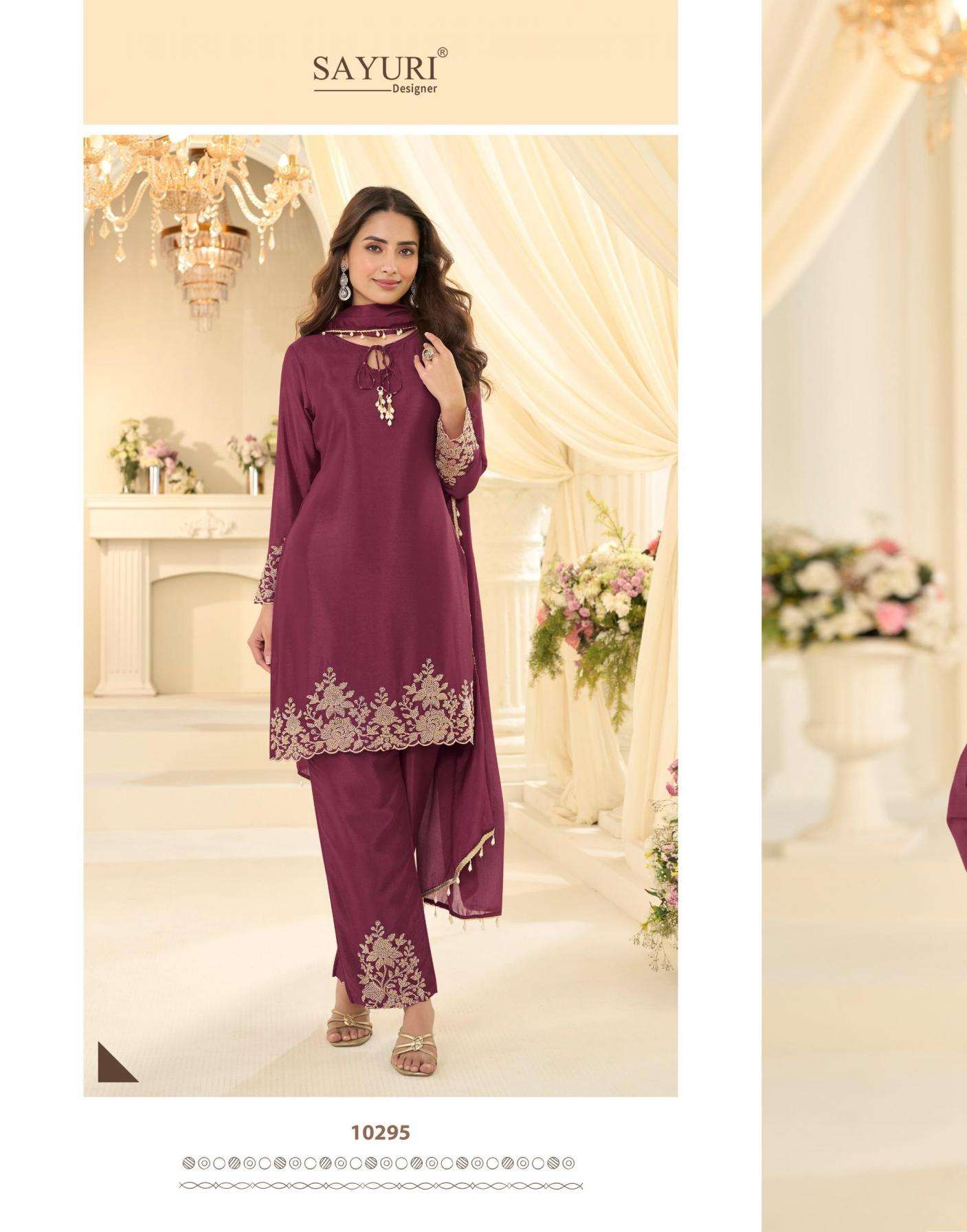 sayuri designer presents beads collection chinon silk fully stitch pakistani style plazzo dress