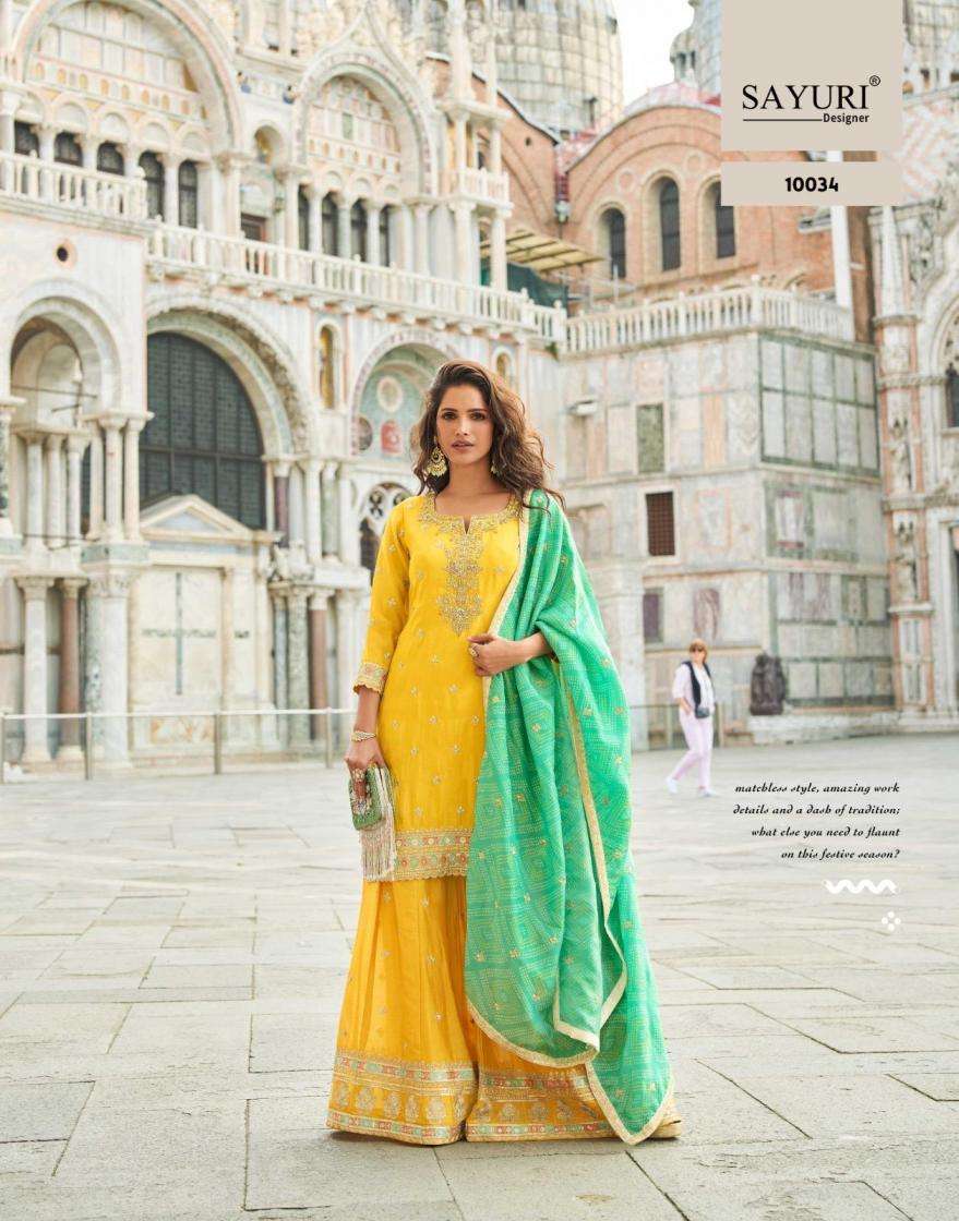 | Name: | Sayuri Designer Presents Taj Simar Silk Readymade Exclusive Sharara Kurti Dupatta |