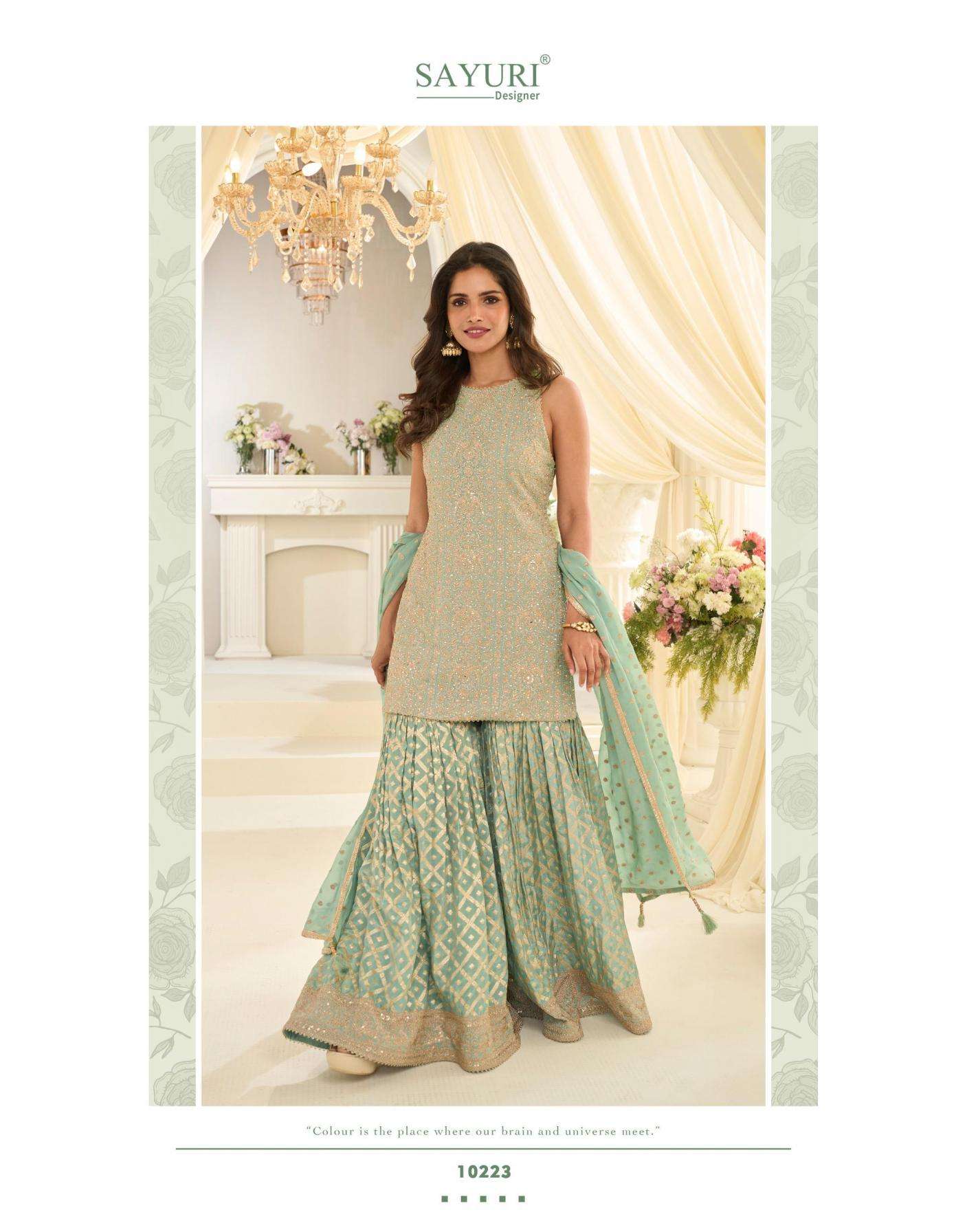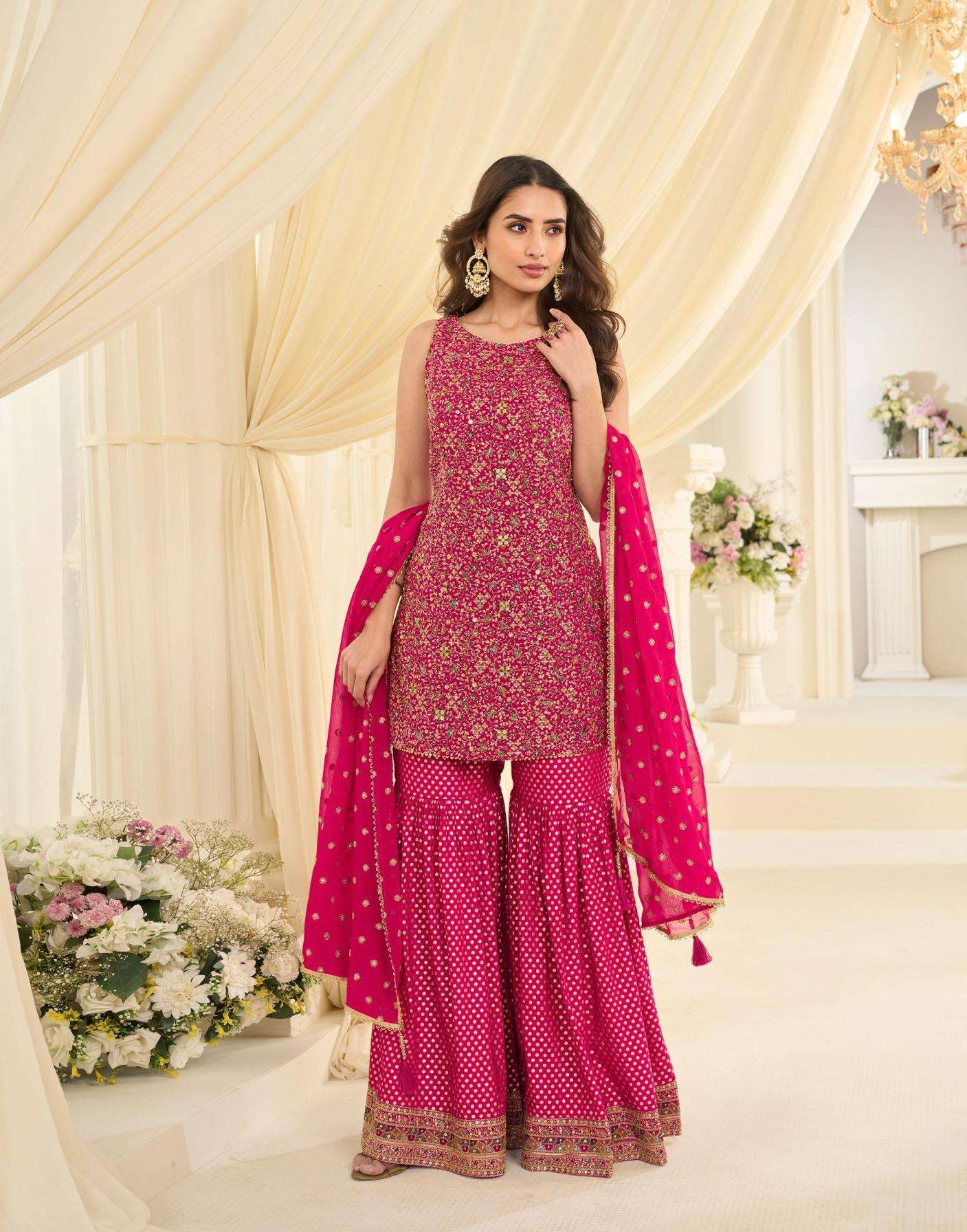 sayuri designer presents vanya exclusive georgette fully stitch plazzo dress