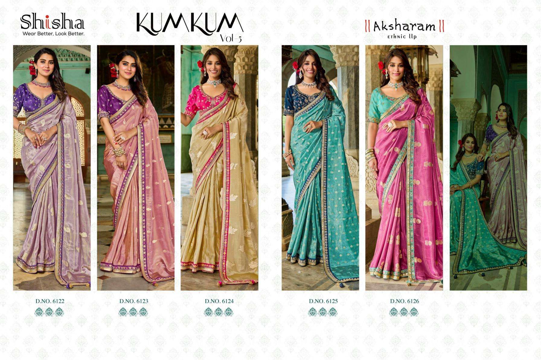 shisha presents kum kum vol-5 amazing viscose tissue sarees catalog wholesale