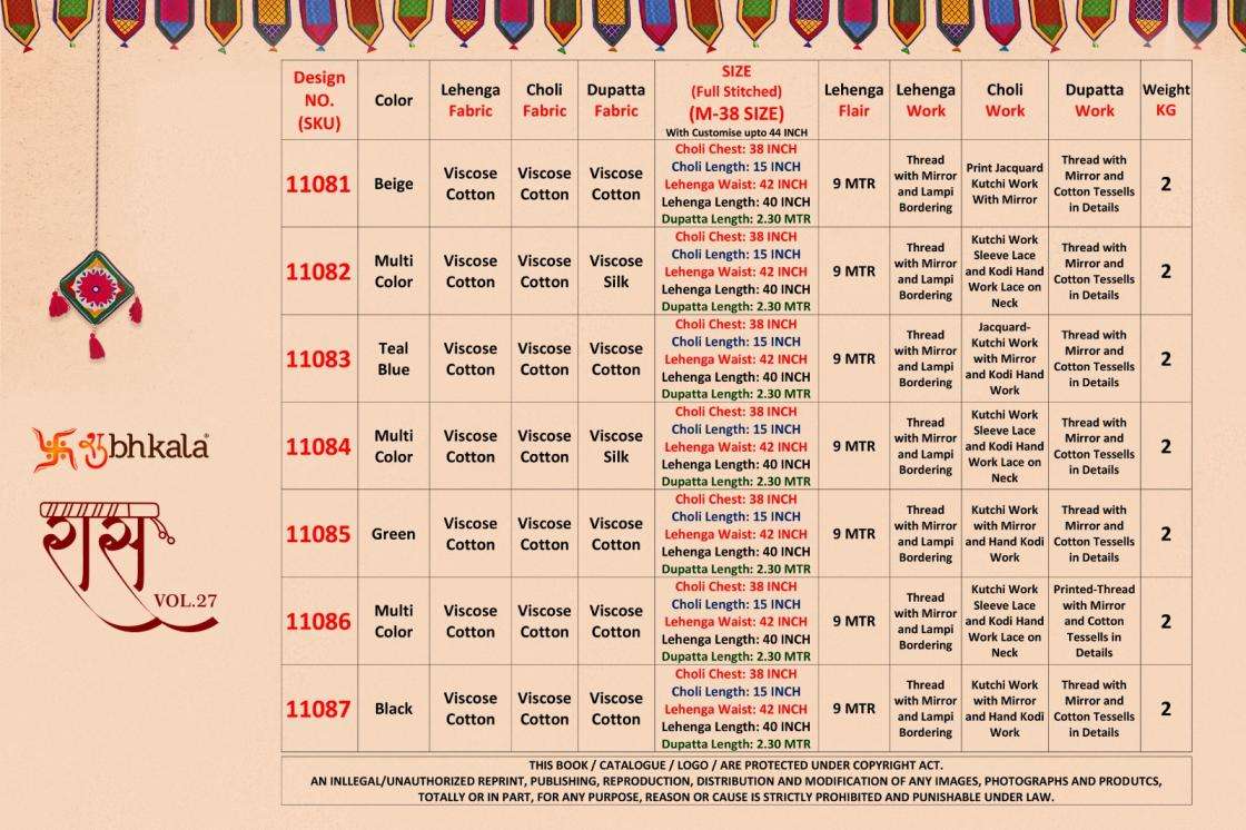 | Name: | Shubhkala Presents Raas Vol-27 Readymade Viscose Cotton Navratri Readymade Designer Chaniya Choli Collection |