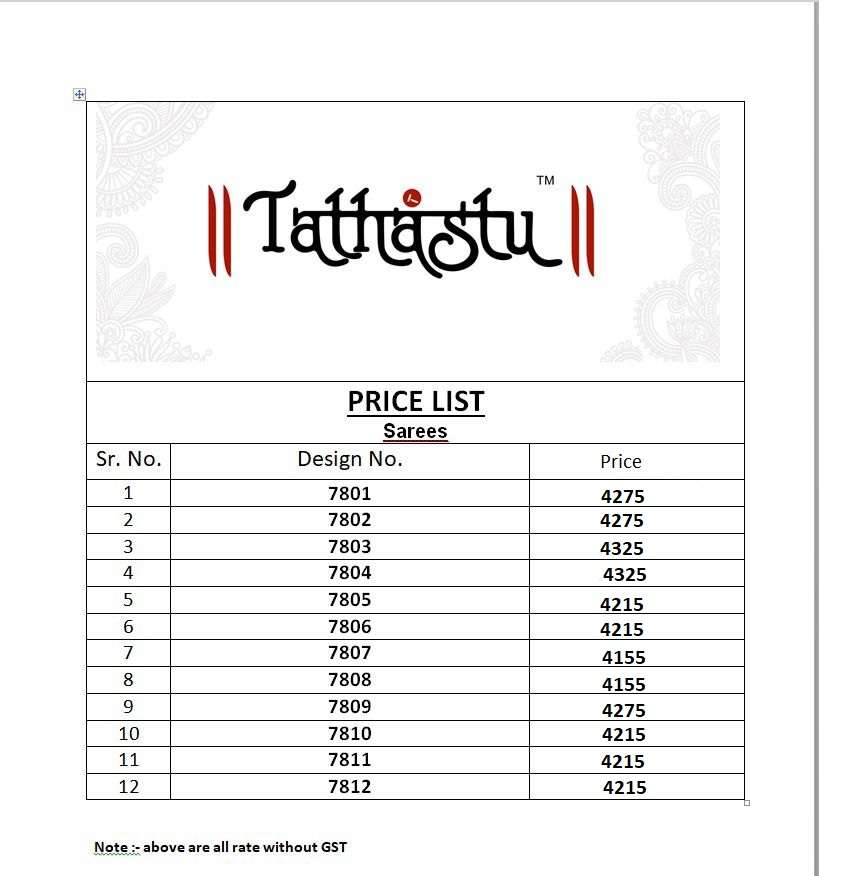 tathastu presents Anaara 7800 series exclusive designer sarees catalog collection