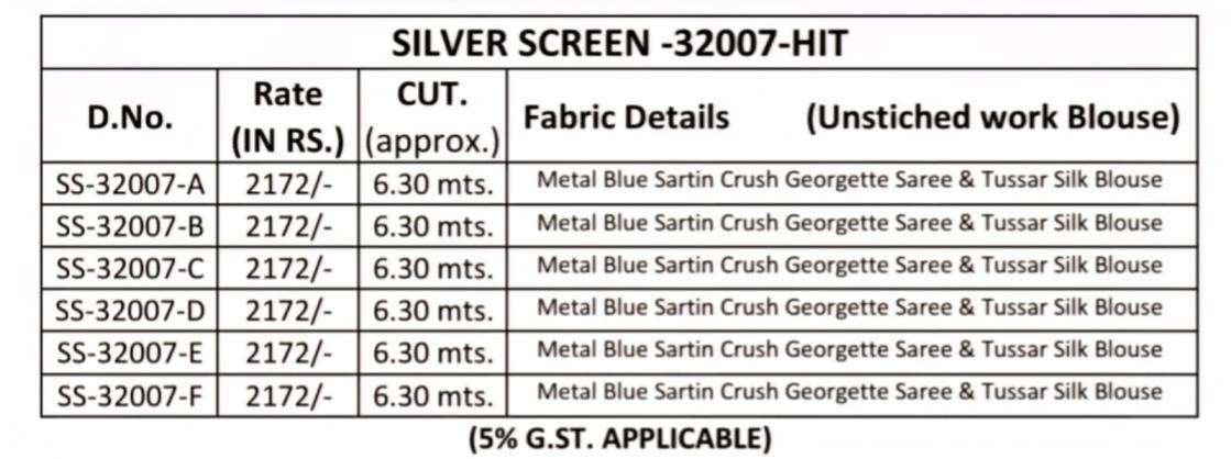 | Name: | Tfh Presents Silver Screen 320007 Sartin Crush Georgette Elegance Sarees |
