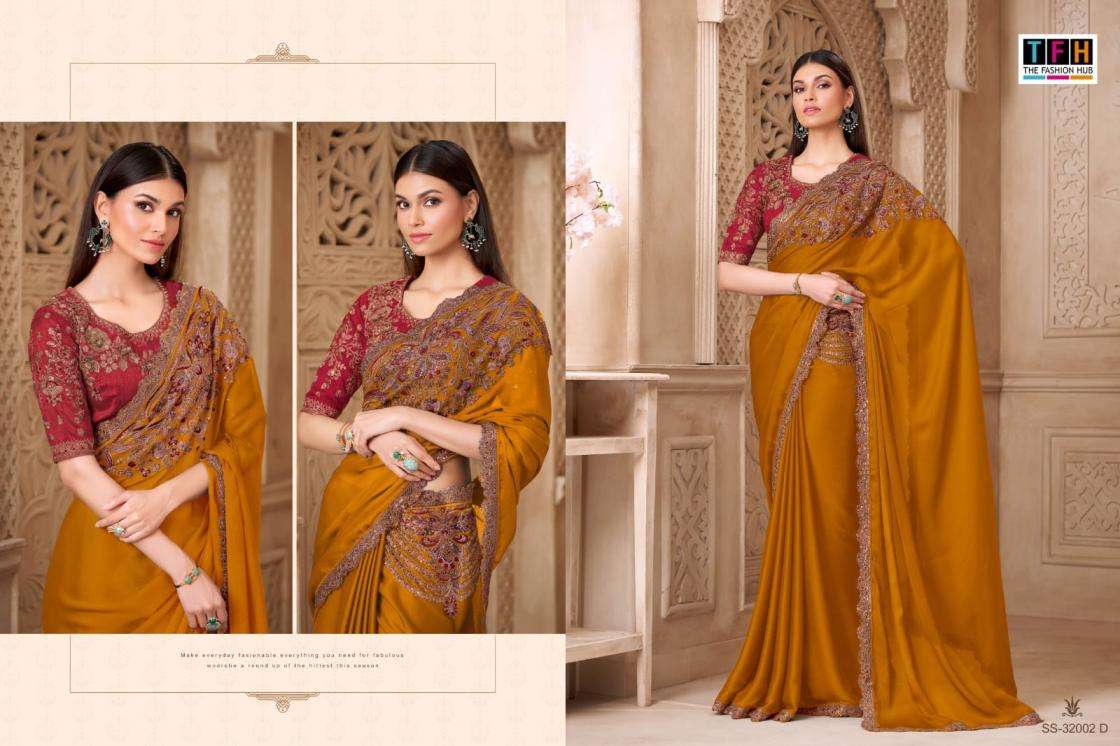 tfh presents silver screen 32002 fiona sartin silk designer sarees catalog