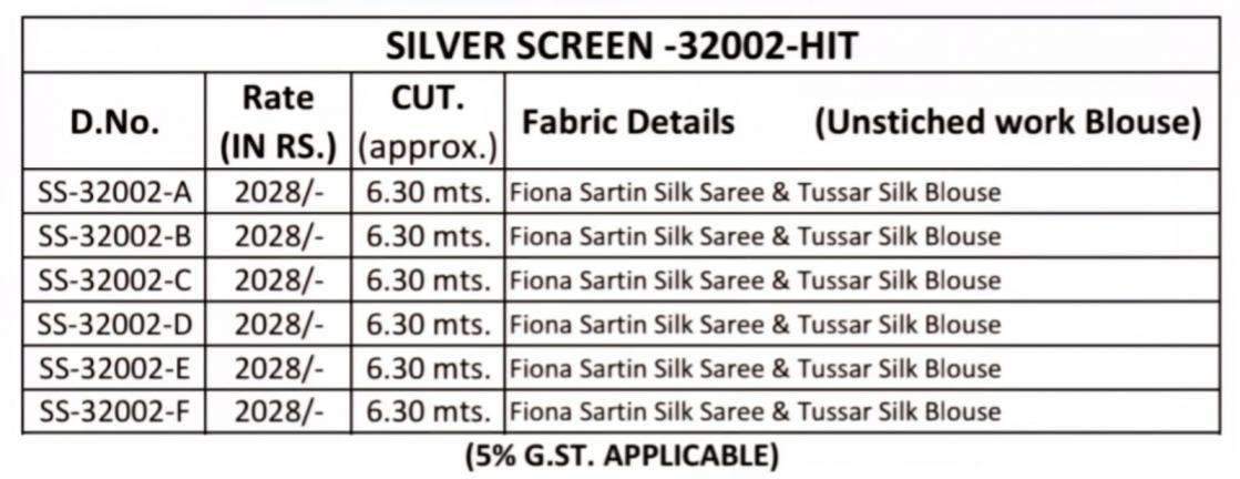 | Name: | Tfh Presents Silver Screen 32002 Fiona Sartin Silk Designer Sarees Catalog |