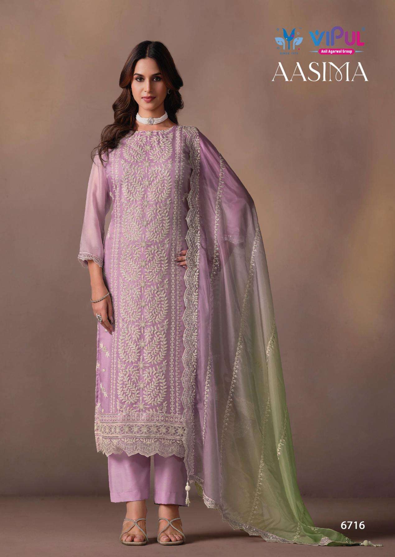 vipul presents aasima lavender organza hit design 3pcs dress